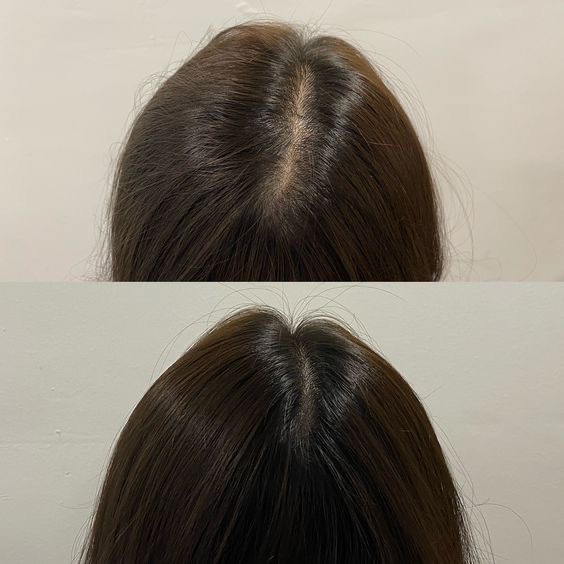 頭皮の見えやすい部分に陰影をつけ、自然なボリューム感を演出します。